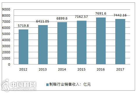 2012-2017年我国制鞋行业销售收入走势(单位:亿元)
