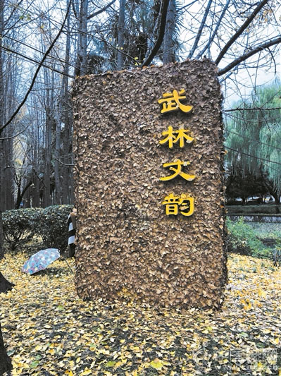 “武林文韵”是一本由银杏叶做成的落叶书,就像一本竖立在书架上的武林秘籍。