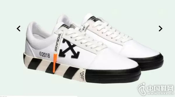 上图:使用了斜条纹和交叉箭头设计的 Off-White 运动鞋
