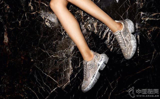 近日,一向走高端奢华路线的鞋履品牌Jimmy Choo最近也推出一款可以“闪瞎眼”的运动鞋——鞋身装点了4546颗施华洛世奇水晶,透明钻石型鞋底。虽然Jimmy Choo的新产品是亲民的运动鞋,价格还是一如既往地高不可攀——4995美元。