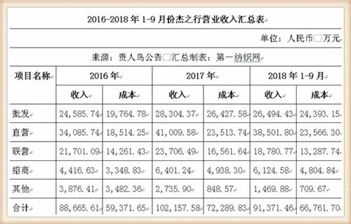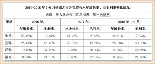 贵人鸟表示,杰之行各渠道收入受市场影响,活动力度逐年加大,毛利率是随之下降,整体收入呈上升趋势。经访谈得知,公司结合目前各品牌的销售状况,2019年-2020年将进行业务结构调整,调整的方向主要为关闭部分低效店,开设与阿迪品牌大店;同时调整分销商构成,扩大分销渠道。业务结构调整稳定后,直营业务(直营+联营)收入预计占企业主营业务收入的50%左右。(注:大店是指按照品牌公司的要求面积在一定平米以上的店铺(350平米/750平米/1200平米),品牌公司对于大店的授权,通常会安排专业的人员或机构对店铺选址、租金要求、人流量、目标人群以及消费能力等各个方面进行严格的调研,只有符合条件的才会发放授权书,而获得授权的大店,由品牌公司提供人员培训、绝大部分的货品配置管理以及限量版发售的权利等)