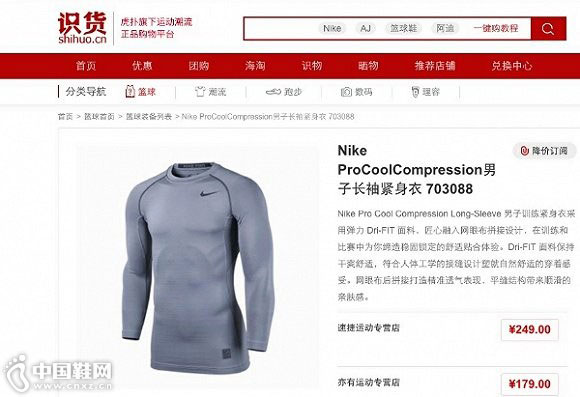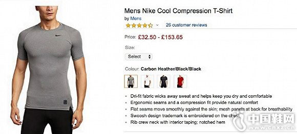 当前,耐克官方网站已经没有以“Cool Compression”为名称的产品。但在亚马逊等第三方电商平台,这一表述依然存在。