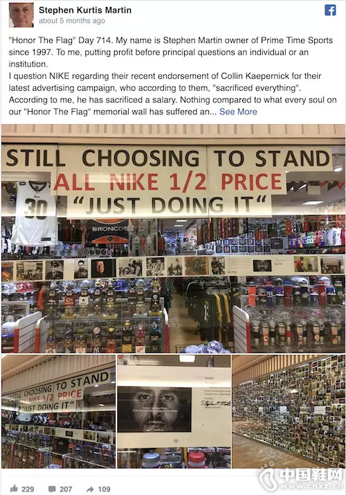 广告出现后,Martin 开始清仓耐克商品并不再进货。来源于 Stephen Martin Facebook 主页。