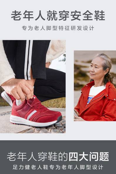 作为老人鞋品类开创者,足力健老年鞋科学依据老人脚型,打造出多款专业的老人鞋。