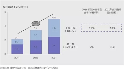 据欧睿信息咨询公司数据,到2020年,在经济的强大驱动下,中国的中产将达到7亿...根据波士顿咨询公司的数据,从2016年到2021年,年轻人的消费正以年均11%的速度增长。到2021年,年轻一代的消费将占消费总量的69%...