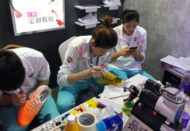 此刻,正巧郎指导过来观看站台,看到了队员们在这里DIY鞋子样式,郎指导有些惊讶,“厉害了!大家在才艺展示呀!”