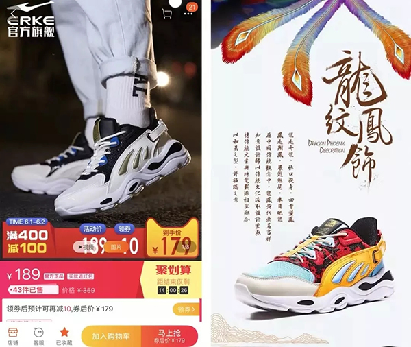 记者登录官方旗舰店发现,这是鸿星尔克于2018年冬季上市的一款老爹鞋,该鞋子定价189元,配色上一改以往国产鞋保守的风格,但“龙凤和玺、型出东方”的鞋品文案又强烈体现出了国潮元素。