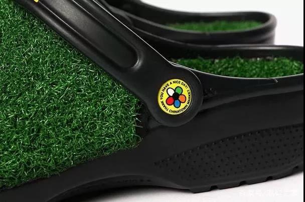 2019年,Crocs 找来 Chinatown Market 合作,双方将恶搞趣味玩到了极致,把人工草皮移植到了拖鞋的鞋面与鞋垫上。
