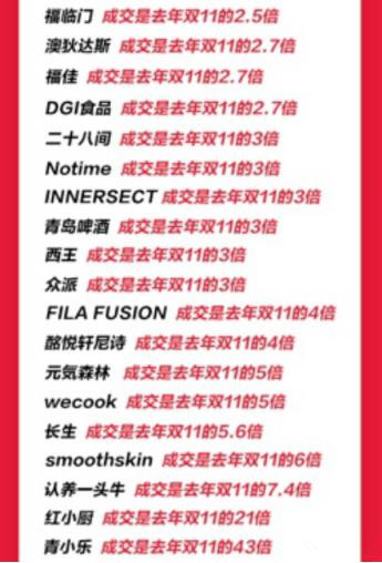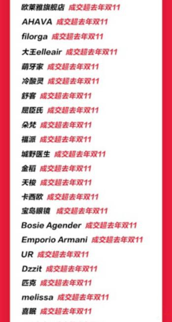 除此以外,还有好利来、伊利冰淇淋等也都超过去年双11。