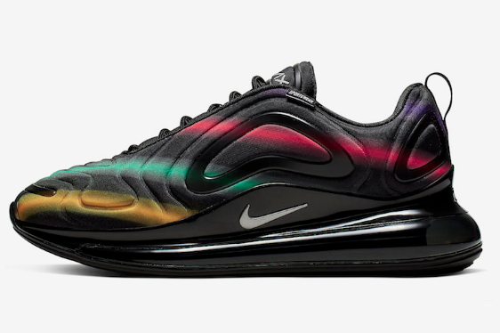 最近, 又打造出一款“极光”配色的 Air Max 720。在全黑的鞋面和气垫上,映射出梦幻的五彩光晕,犹如极地浩瀚夜空中泛出的璀璨极光,而银色的 Swoosh 以及 Air Max logo 点缀期间,更如同明月和星辰,整体“颜值”十分动人。