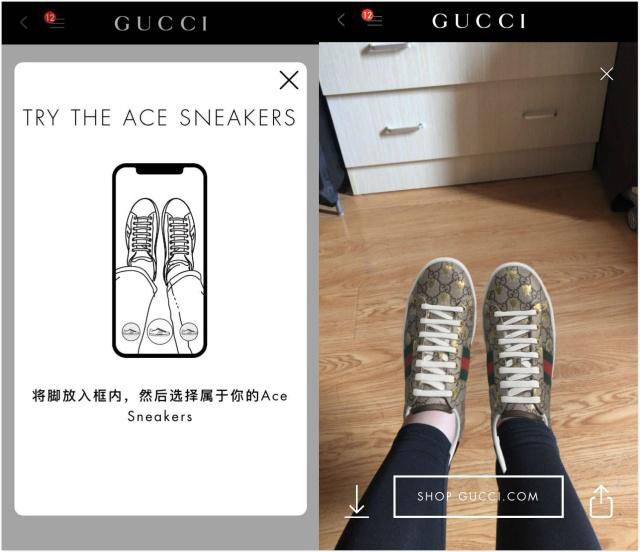-市场资讯】GUCCI的App在6月26日进行了一项更新,增加了应用内AR试鞋的功能。这是和白俄罗斯科技初创公司Wannaby合作开发的一项技术,目前只支持试穿GUCCI Ace鞋履系列。