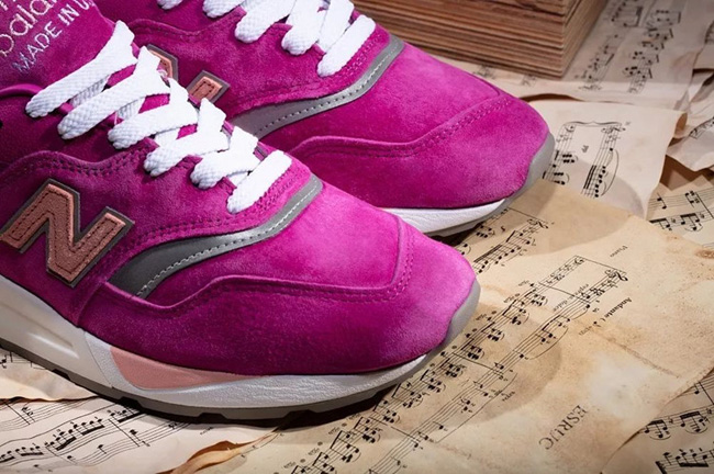 本次联名鞋款997S Fusion“ESRUC”配色灵感源自《No, No, Nanette》海报中的玫红与橙色,鞋垫中的花纹也借鉴了海报中的边框设计,而“ESRUC”也是英文单词“curse”(诅咒)的倒序写法。