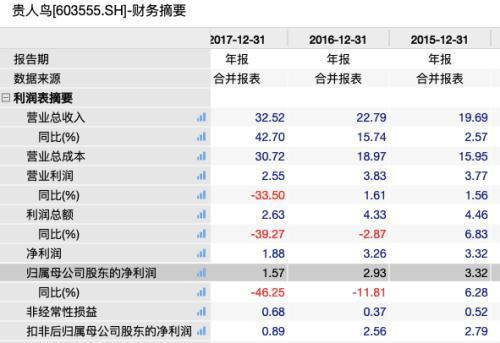 一系列动作没有为贵人鸟打开新局面,反而“后院起火”,净利润持续下滑。