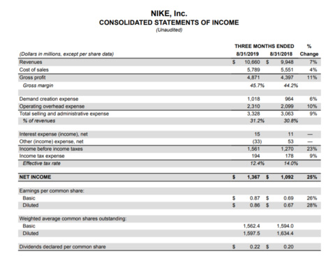 耐克2020财年一季度营收增长7% 净收益增长25%