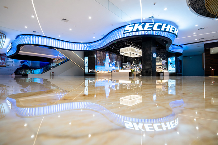 同设计师品牌开展联名合作,凸显了斯凯奇中国将在服饰领域发力的决心。但除了这一点,品牌在中国的新动作也越来越多。就在今年一月,斯凯奇中国陆续在沈阳、金华、青岛等非一线城市开出了单店面积超过1000平米的超级大店。在零售业持续遇冷的背景下,许多品牌都纷纷关掉实体店铺,美国快时尚品牌Forever 21近日还宣告破产,并将关闭其在全球范围内的350家门店。