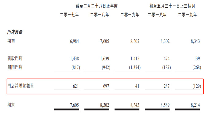 近期,滔博国际的门店扩张也在放缓。据招股书,2017财年和2018财年,滔搏国际门店净增621家和697家,到了2019财年,门店净增仅41家。截至今年5月底的前三个月,门店数量净减少129家。