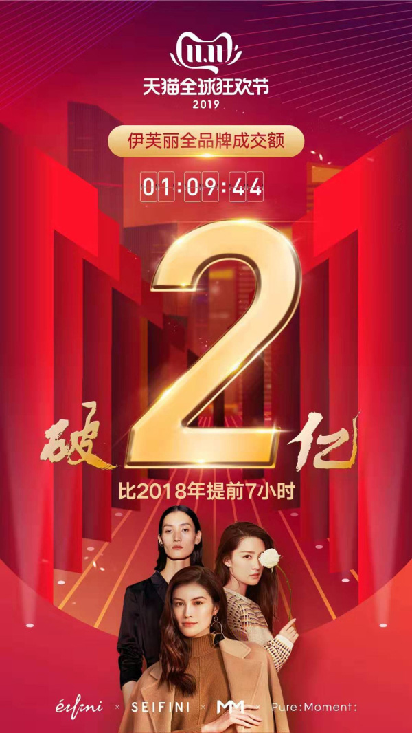 【-电商资讯】今天是11月11日,属于品牌的购物狂欢季已经到来。下面就跟随中服网一起看看伊芙丽女装品牌新鲜出炉的战绩吧!