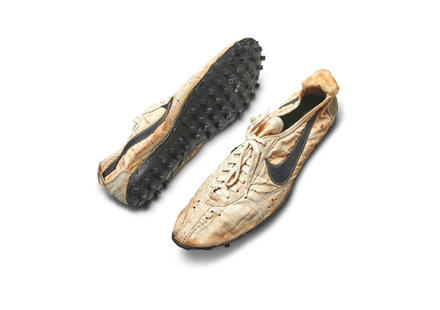 今年7月,著名艺术品拍卖行苏富比与纽约知名寄卖型鞋店Stadium Goods联合举办了一场号称“最罕见的终极球鞋拍卖”(Stadium Goods: The Ultimate Sneaker Collection Online),拍卖品中也包括一双Moon Shoe。最终,加拿大投资商迈尔斯·纳达尔(Miles Nadal)以43.75万美元(约300万元人民币)拍下那双鞋子,一举打破球鞋公开拍卖的纪录。
