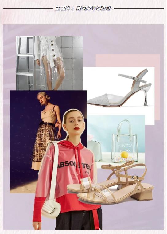 透明设计在2019年风靡全球,但其爆火程度持续延伸2020春夏,并展现出多样的变化。如不同材质拼接设计,不同的颜色与不同透明程度相结合,以及饰扣与图案的装饰。