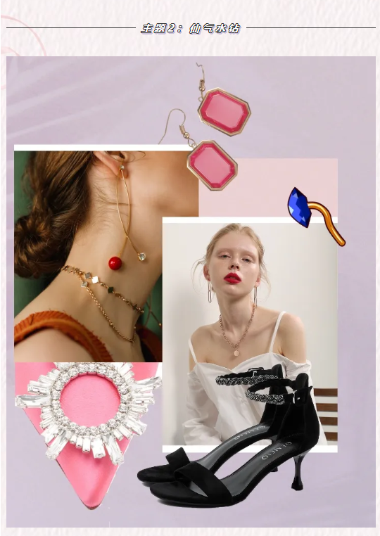 2020夏季水钻设计凉鞋再次风靡,水钻挂链设计、鞋面装饰或搭配PVC面料展现,经过设计师们的巧思,又焕发出了新的生命力。