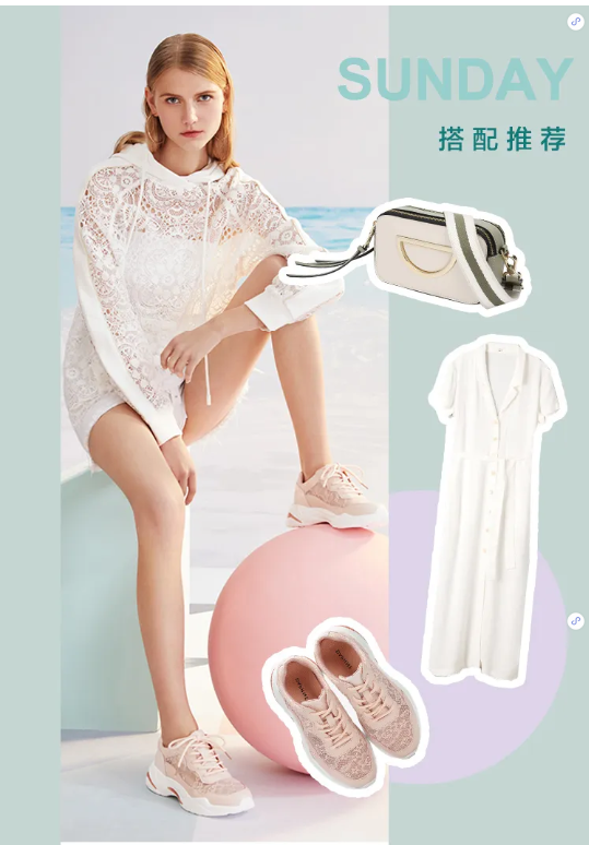 粉色老爹鞋搭配白色蕾丝裙,