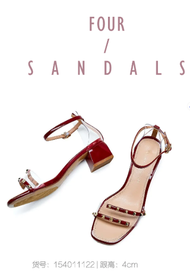 复古红方头凉鞋,时尚铆钉PVC鞋带,亮点满满,超抢眼!