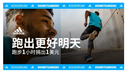 在中国,阿迪达斯将与悦跑圈APP携手,帮助运动爱好者记录自己的跑步时数,参与活动。2020年5月18日,#HOMETEAMHERO跑出更好明天”活动已经在悦跑圈开启报名通道。