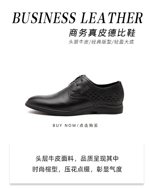 夏季新品男士皮鞋,适合职场商务人士穿着。