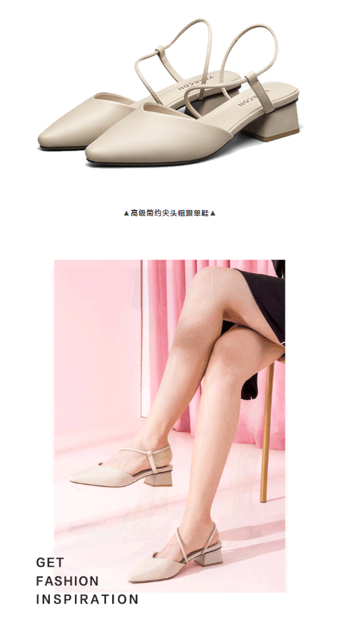 尖头设计总是显得整个造型格外的精致高级,所以它一直都是连衣裙的最佳搭档!简约的尖头搭配细绳设计,经典而不复杂,是高级的迷人性感!