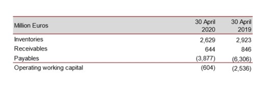 再者,在调整经营模式后,公司存货并没有因为疫情滞销而上升,反而下降了10%。经营自由现金流由去年第一财季的净流出25.36亿欧元减少至6.04亿欧元。