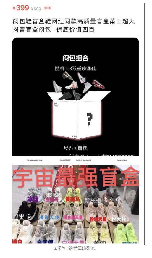 ÕýÈçΰ¼ÎËù˵£¬ÃưüÈȶȽ¥¸ß£¬Ò²ÈÃÇòЬ½»Òׯ½Ì¨¿´µ½ÁËÉÌ»ú¡£ÇòЬ½»Òׯ½Ì¨¡°µÃÎ£¨ÔÃû¡°¶¾¡±£©ºÍÆäÐֵܯ½Ì¨¡°95·Ö¡±Ò²ÔøÍƳö×Ô¼ºµÄ¡°³±Á÷µ¥Æ·Ã¤ºÐ¡±¡£µÃÎïÔÚ2019Äêµ×ÍÆ³öµÄäºÐ²Î¿¼ÊÛ¼ÛΪ3000Ôª£¬ÀïÃæ°üº¬4¼þµÃÎïÆ½Ì¨ÔÚÊÛ³±Á÷µ¥Æ·£¬³ßÂë¿îÊ½Ëæ»ú¡£
