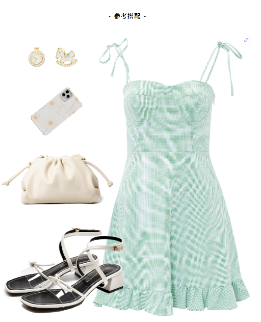 薄荷绿的法式吊带格子裙,背后褶皱松紧设计,勾勒身体曲线,搭配白色中跟凉鞋,get女团同款大长腿!