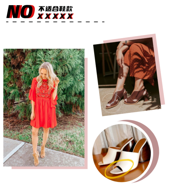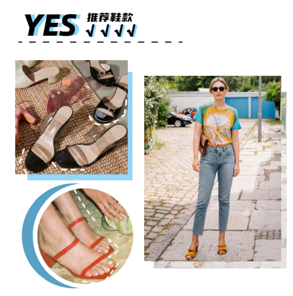 夏日凉鞋的选择上,宽版脚可以考虑宽松版型的方头鞋、穆勒鞋。如果脚背较高,就要选择宽松的脚背线带设计,让美感和舒适度兼具。
