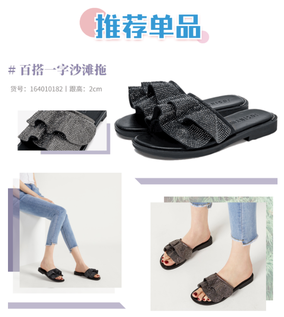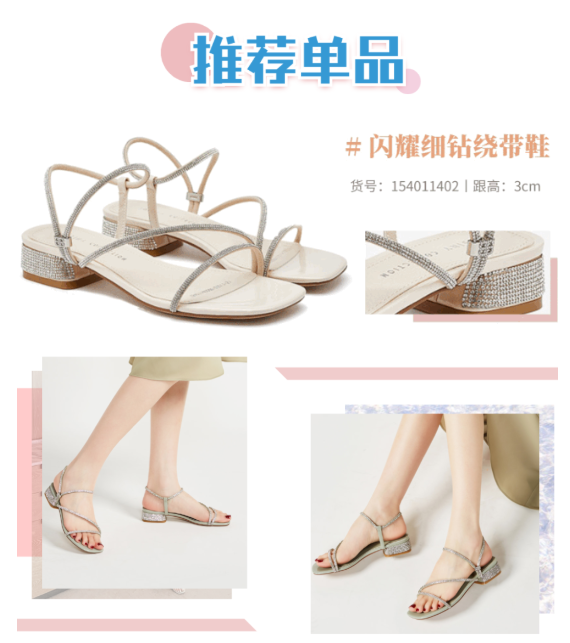 水钻装点的细带,让这款鞋仙气感up,舒软大底的低跟设计,走路轻便不累脚。细带可固定脚背,也可放至后跟,两穿百搭。配上清凉小裙子,小仙女就是你了!!