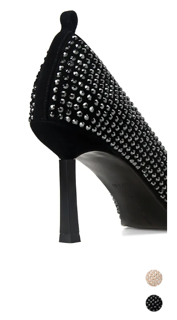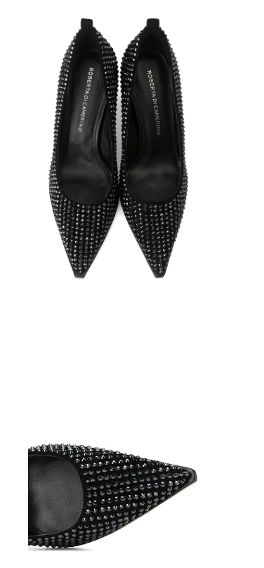鞋底边缘微凸的沿边设计和几何感细跟,带有几分凌厉的大气,兼具保护鞋头的作用。品牌最为拿手的烫钻工艺,颗颗闪亮致命魅力。穿上它无论去哪里,你都是气场最强的那个。