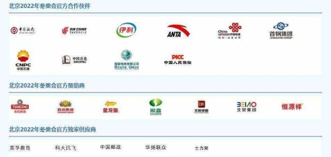 安踏在2019年成为北京冬奥会官方合作伙伴,也是唯一一家运动品牌服饰。需要说明的是,北京冬奥会的赞助共分为四级:官方合作伙伴、官方赞助商、官方独家供应商、官方供应商。安踏属于冬奥会最高级别的赞助商。