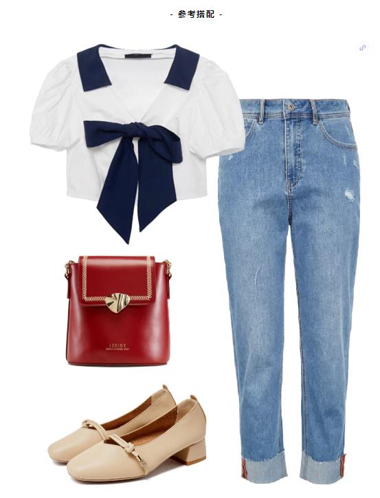 蝴蝶结泡泡袖上衣,身材包容性hin强,气质V领设计凸显迷人锁骨,搭配高腰牛仔裤,你离高调出街就差一双裸色中跟单鞋啦!