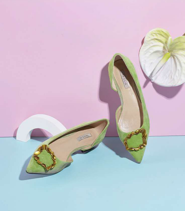 而关于产品,公司在设计时也考虑的诸多元素的结合,由于此品牌的定位人群大多为青年女性,所以整体的设计风格比较成熟却又不缺乏活力。例如下面这款女鞋,考虑到顾客大多为职场女性,所以采用了低跟的设计理念,低调中不缺乏品质,同时主打的季节为春季,还特意选用了绿色为主要颜色,使之更加与季节相映衬,同时又为穿着的人增添了一丝活力,在工作以及平时与朋友逛街时都是一个不错的选择。