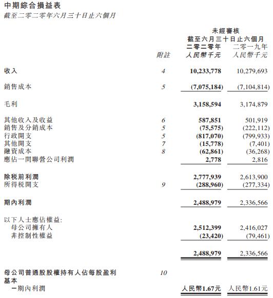 申洲国际表示,销售额下降主要因受新冠肺炎疫情的影响,消费者外出活动减少,客户之线下门店未能正常营业,导致市场需求不理想。此外,期内,申洲国际已退出零售业务,若剔除零售业务退出之影响,申洲国际制造业务之销售额仍较上年同期增长约2.3%。