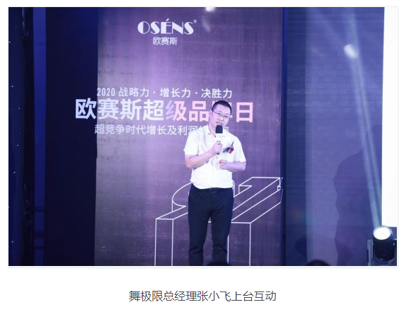 会议期间,舞极限张总应邀接受了媒体的采访,就舞极限品牌的发展、与欧赛斯的合作故事及此次受邀参加欧赛斯超级品牌日等问题一一作了回答。
