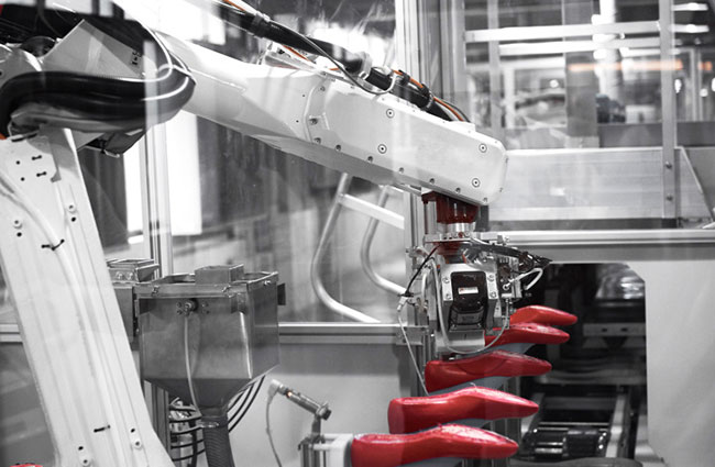 天创时尚作为国内领先的“设计-生产-销售”一体化商,从2002年开始就已经自研了ERP系统,可以说是国内鞋履行业最早有信息化及数字化经营意识的企业。此后其在数字化方向上一直积极探索,2018年更是第一家把工业机器人引入生产线的。