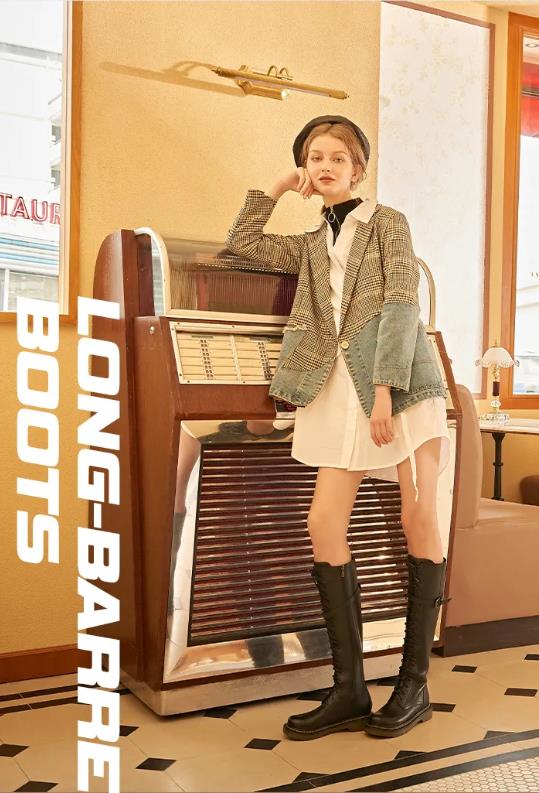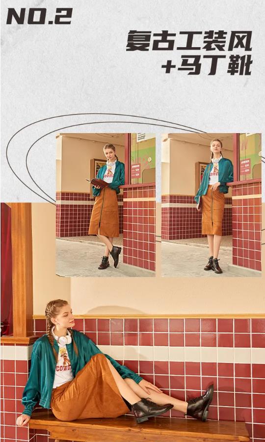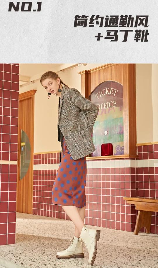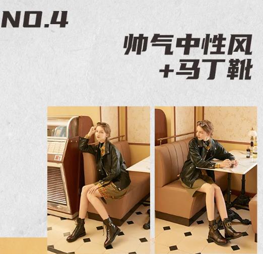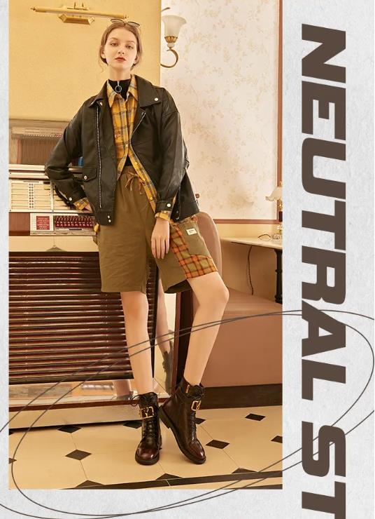 格纹衫叠穿皮衣工装裤和马丁靴,