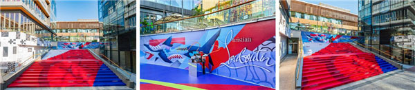 Christian Louboutin 2020年10月23日星期五于北京三里屯太古里北区下沉花园台阶举办Loubishark运动鞋系列发布会,携手中国涂鸦艺术家、建筑设计师陈拾叁打造限时涂鸦装置艺术。在画面中,拾叁从Loubishark运动鞋设计细节中汲取灵感,将Loubishark的关键元素进行转译和重构,来自巴黎的优雅艺术元素搭配街头涂鸦风格。从不同维度展示全新Loubishark运动鞋,搭配先锋格调,极具辨识度的造型带来趣味摩登格调。