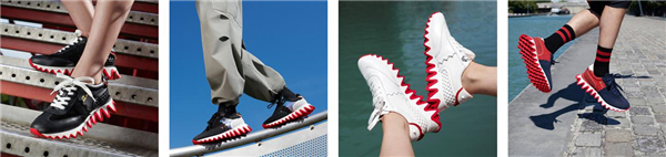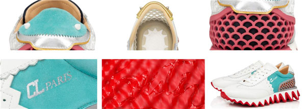 为都市游乐场而生的Loubishark运动鞋以鲨鱼造型为灵感,以 70 年代的复古田径跑鞋为原型,颠覆传统运动鞋造型打造个性轮廓,用精致细节塑造全新格调:减震加垫内鞋底增强鞋履的保护性能,精湛匠人工艺耗时67小时外鞋底铸模,搭配Louboubtin经典签名压印于外鞋底,夸张比例彰显独特格调,以复古设计为灵感的CL Pairs标识压印于鞋身内侧,成为绝不容错过的亮点。品牌经典红色与优雅撞色创造强烈的视觉冲击,Loubishark的几何撞色美学搭配个性轮廓打造品牌趣味格调。
