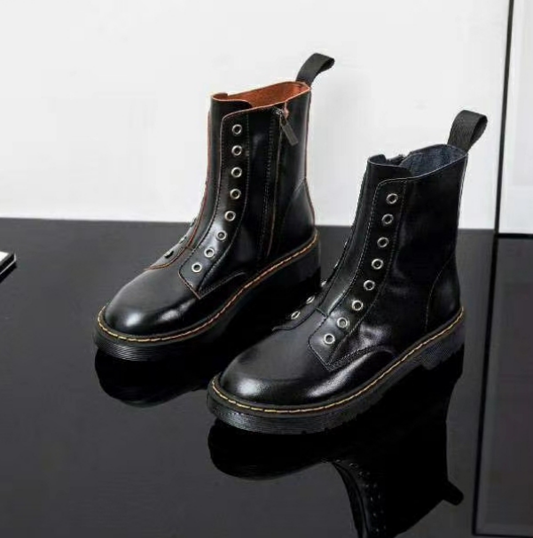 天气已经变冷了,是时候给我们的脚增加一些温度了,这款时尚的短靴,采用的纯黑色的亮皮材料 ,满满的朋克风质感,整体看上去,鞋子也更加的高级上档次,设计感十足的短靴让人一眼就能喜欢上它,拥有这样一双短靴 ,即使走了很长的路程,你也能轻轻松松的,牛筋底的材质,让鞋子更加的舒适自由,没有鞋带的它,大家穿着方便又省事,出门约会,同学聚会,都非常适用哦。