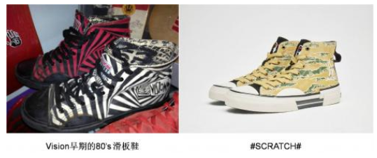 #SCRATCH#以VISION STREET WEAR极具历史经典意义的滑板鞋型80S CANVAS HI RETRO作为雏形,沿条采用解构重塑的设计手法。