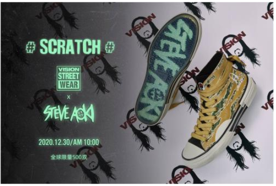 VISION STREET WEAR × Steve Aoki 全球限量联名鞋款#SCRATCH#,将于2020年12月30日上午10:00,在天猫官方旗舰店正式发售,售价¥799.00敬请期待!