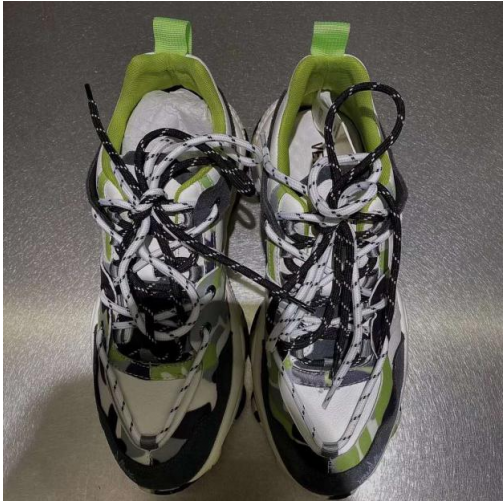 颜色搭配设计灵感源于Tank外形线条,白绿灰颜色搭配,选用异材质无缝拼接,含有了花式的“vetements”变型写法、线条拼接,色彩跳转还有双色搭配鞋带,总体都是解构的设计风格。