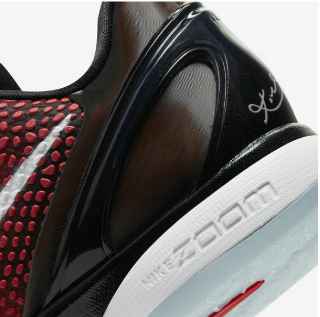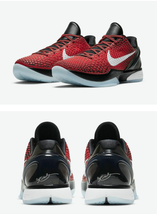 红色抢眼、黑色沉稳,搭配上白色 Swoosh Logo 以及淡蓝色水晶外底,看到这一切不免让人想起十年前的科比。
