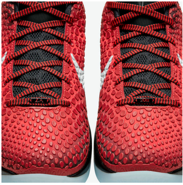从美乐淘潮牌汇获悉的图片来看,整双鞋基本采用元年造型复刻,一袭红色鞋面搭配科比 6 独特的蛇纹纹理,带来极为亮眼的视觉效果。